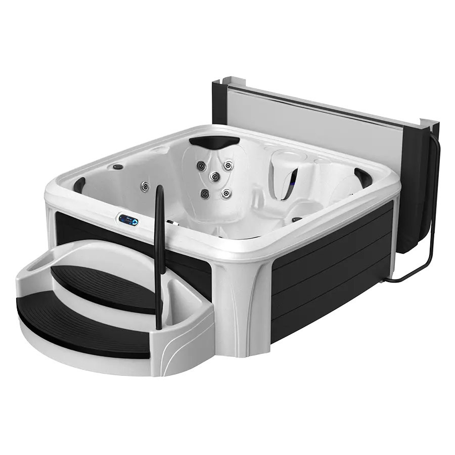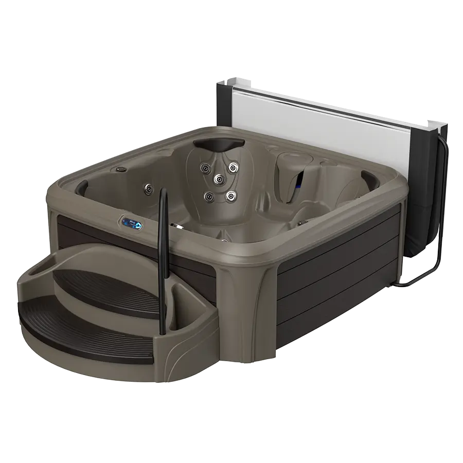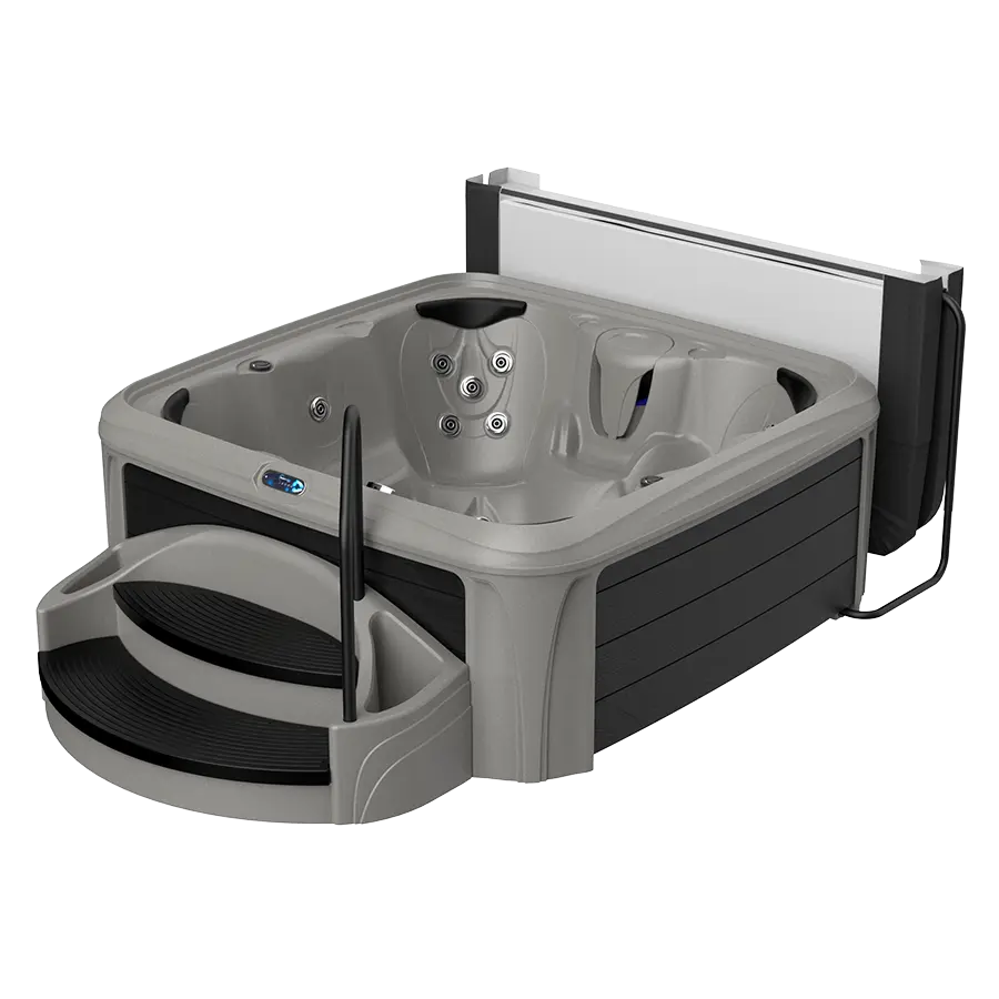 All Suite spas include the extra wide integrated Suite Steps with slip-resistant step treads, sturdy handrail and two side planters, plus a bonus storage area inside the step. The suite also includes a quality Cover Lifter to make lifting, storing and replacing your cover easy and convenient between every use.
